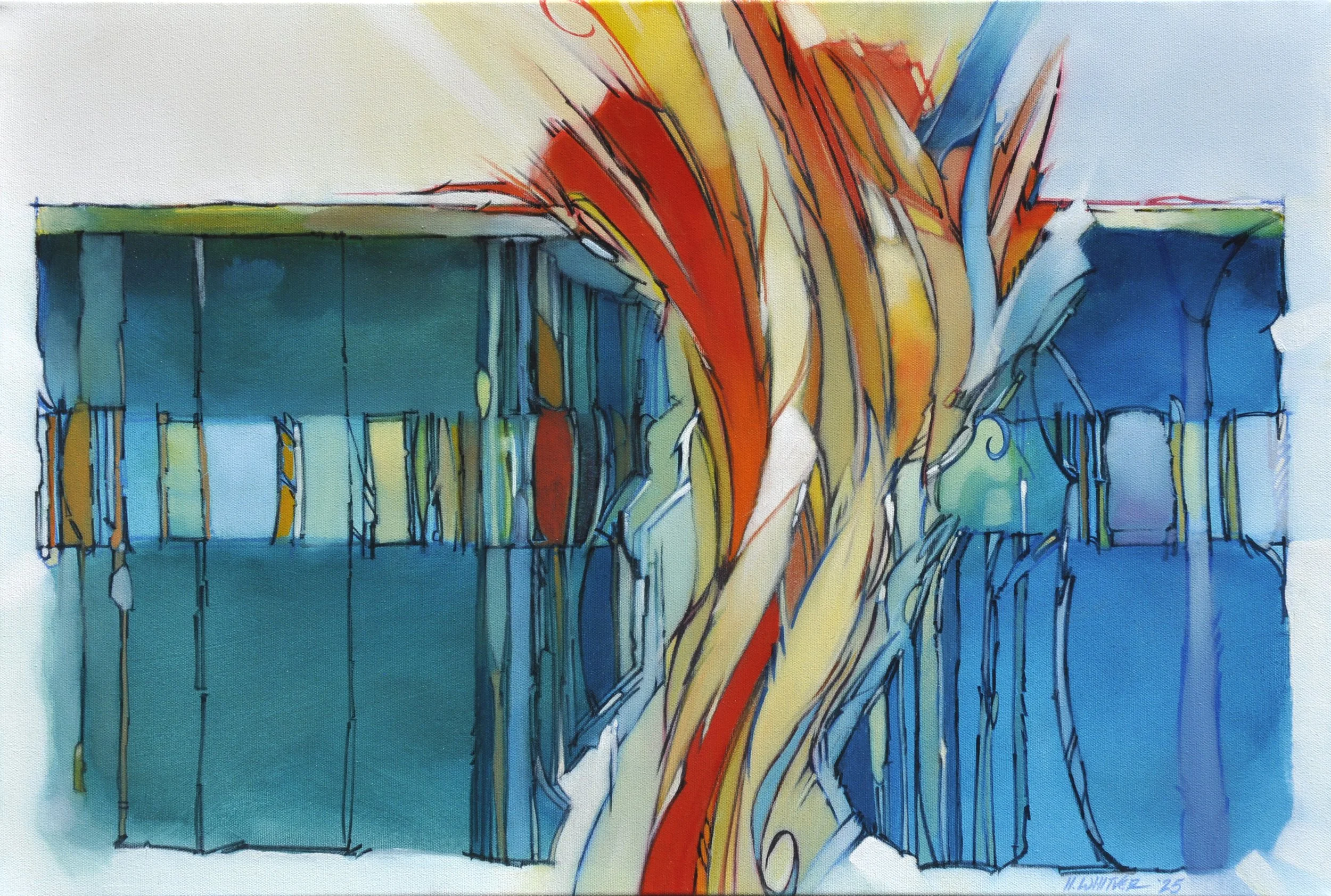 In late 2013, I started the series of paintings represented here. They are conversations with my materials and environment: Paint, canvas, brushes, light and especially, friends. Please visit the Recent Work gallery page to see my latest paintings and work in progress. Available paintings with size and pricing are listed on the Available Art page.